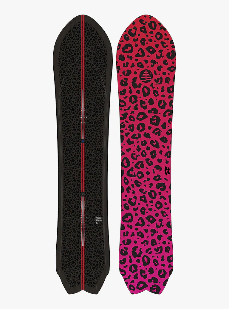 方向性雙尾外觀(Directional Swallow-Tail):結合向前的長鼻與雙魚尾設計,在深雪中提供極佳的浮力與轉向控制,後擋面可輕鬆下沉,讓板頭自然浮起 。