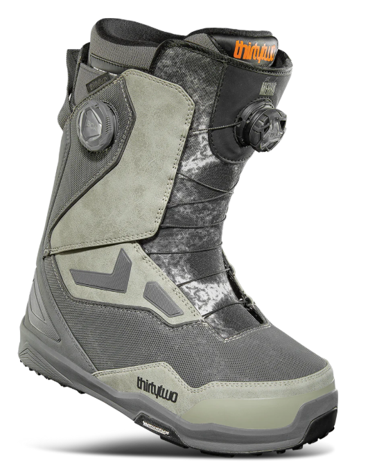 ThirtyTwo TM-2 DOUBLE BOA WIDE MERRILL 單板雪鞋 是 ThirtyTwo 品牌中最受歡迎的中等硬度雙BOA雪鞋之一,此版本為 WIDE 寬楦版,並由職業滑手 Jeremy Jones 設計的 Merrill 配色款。